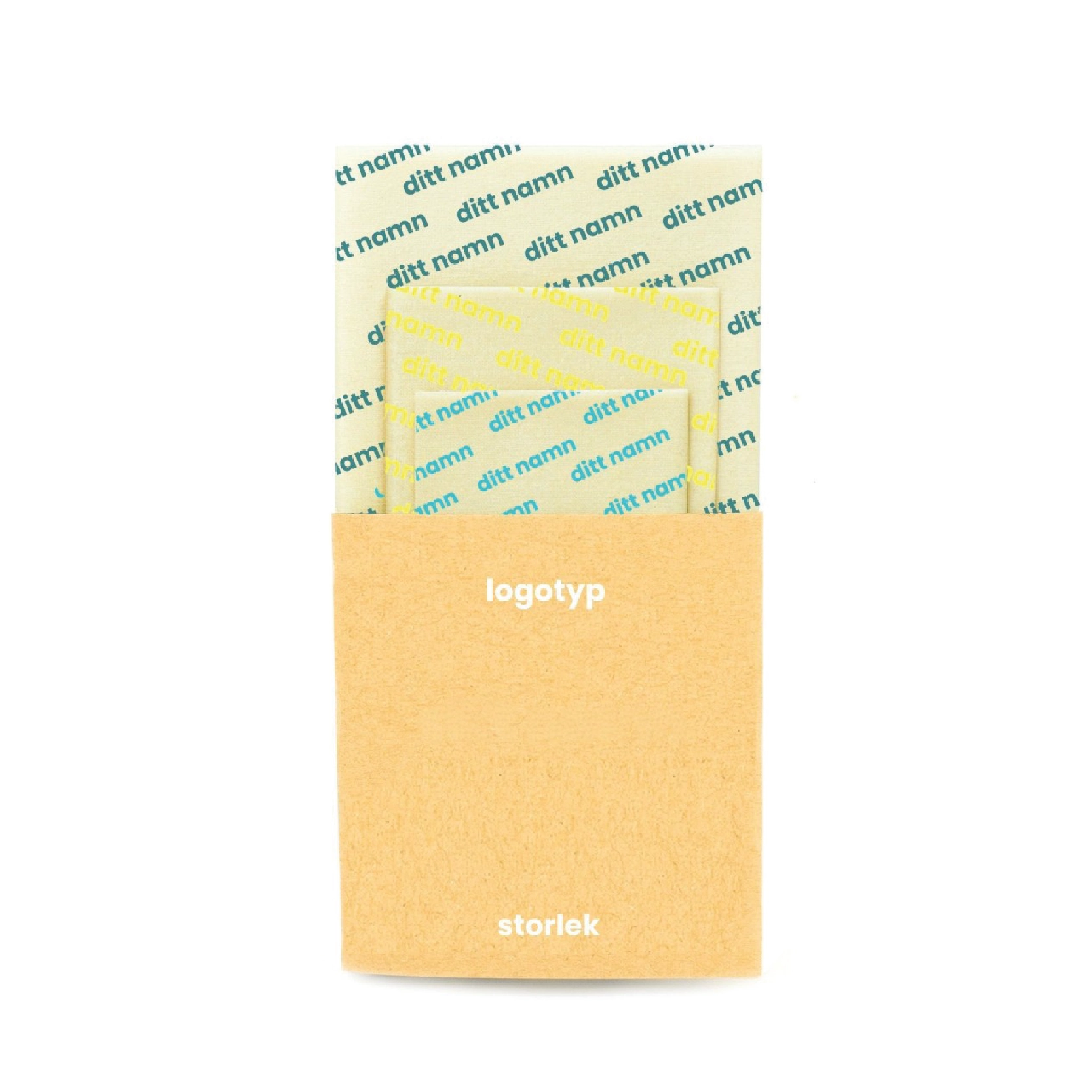 Denna artikel finns att välja mellan tre storlekar. En liten (20x20 cm), en mellan (27x27 cm) och en stor (35x35 cm) bivaxduk.